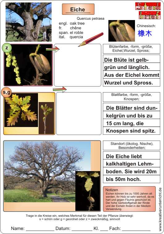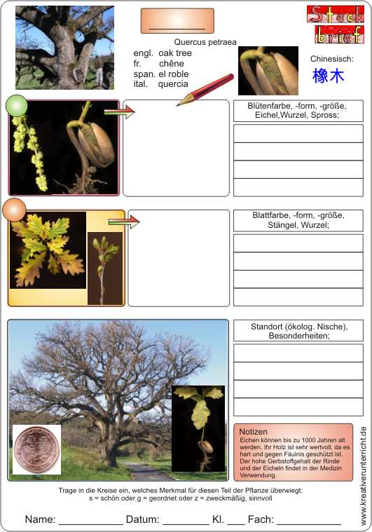 Steckbrief Eiche - Characteristics of Quercus petraea
