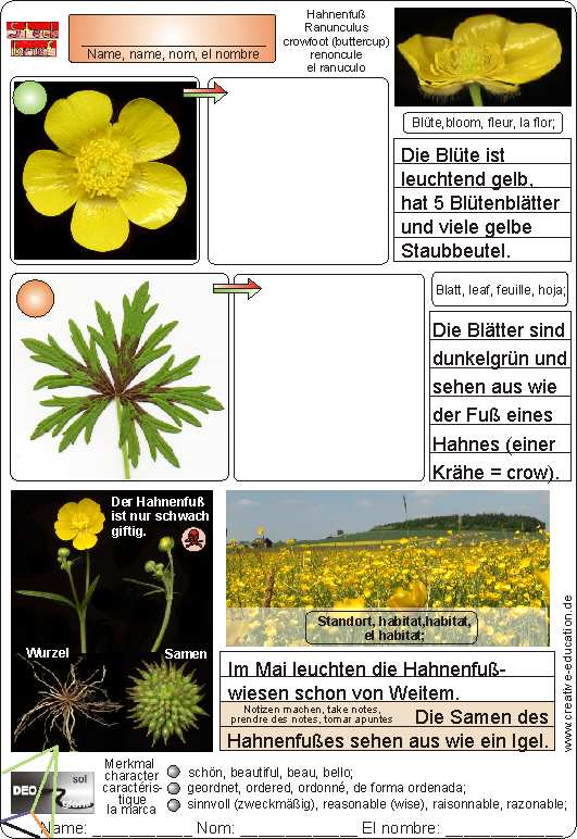 Steckbrief: Hahnenfuß, Ranunculus, buttercup, crowfoot, renoncule, el ranunculo;