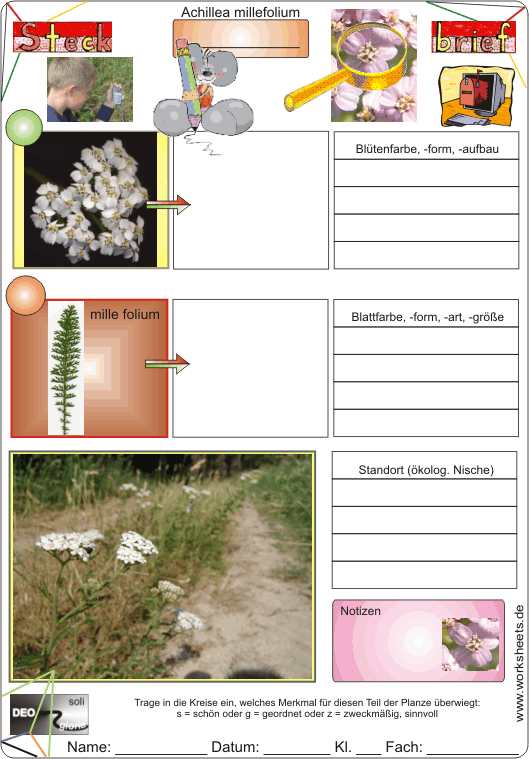 Steckbrief: Schafgarbe - Heilpflanze, Tee, desinfizierend für Mundraum und Hals, - mit Blüte, Blatt und ökologischer Nische (sie wächst am Rand von Wegen und Feldern).