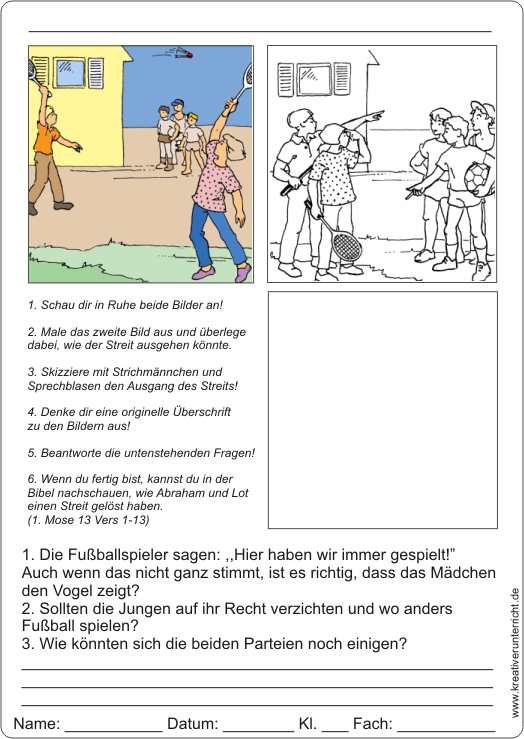 Arbeitsblatt eignet sich auch zum Einstieg in den Streit Abrahams mit Lot