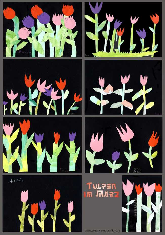 Super kreative Ergebnisse einer zweiten Klasse zu den Tulpen im März