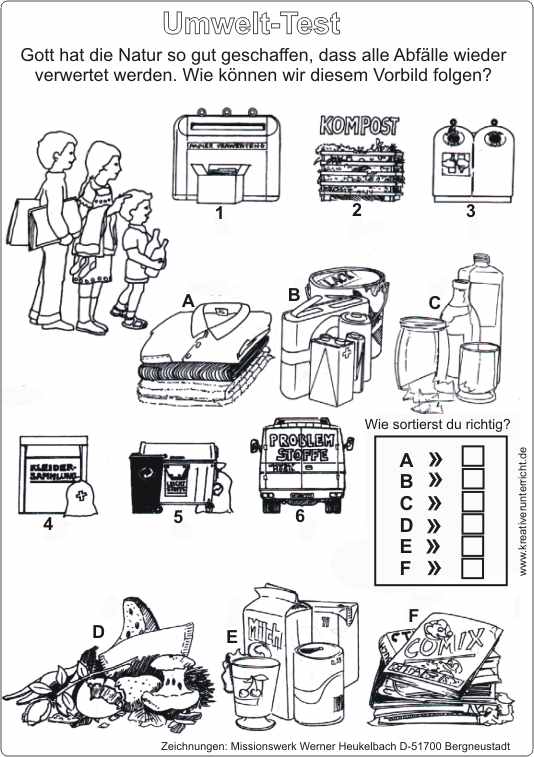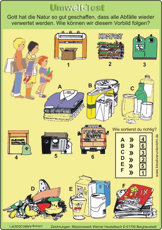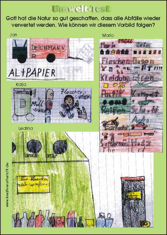 Die Beispiele unten zeigen, dass es sinnvoll ist , die Schüler zuerst selbst nach Beispielen der umweltgerechten Entsorgung zu suchen.