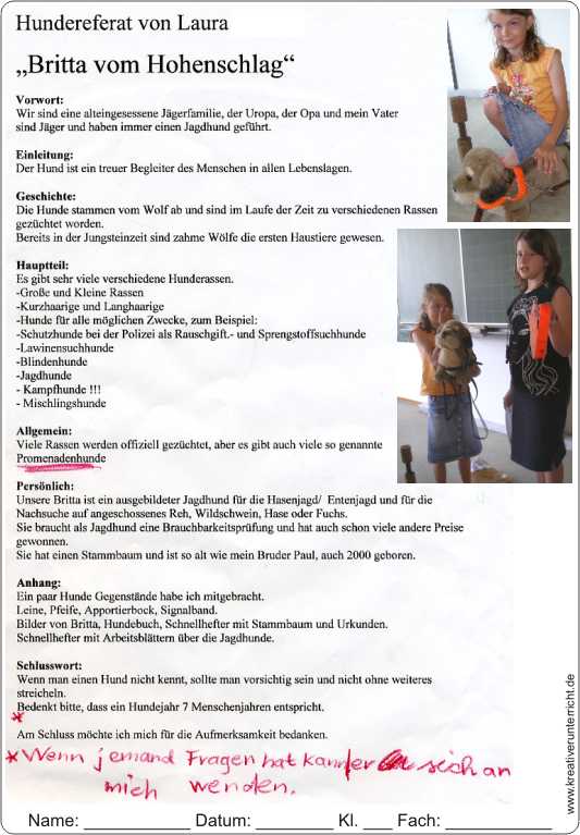 Unser Jagdhund Britta vom Hohenschlag - ein Referat von Laura.