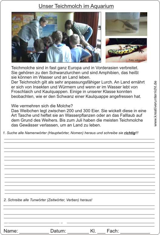 Unser Teichmolch im Aquarium - eine Nachschrift zum Thema in HSU: ,,Lebensraum Teich”