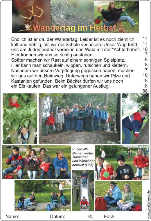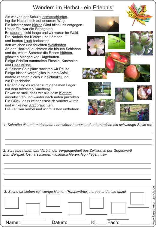 Wandern im Herbst - ein Erlebnis (Nachschrift für die 4. Klasse)