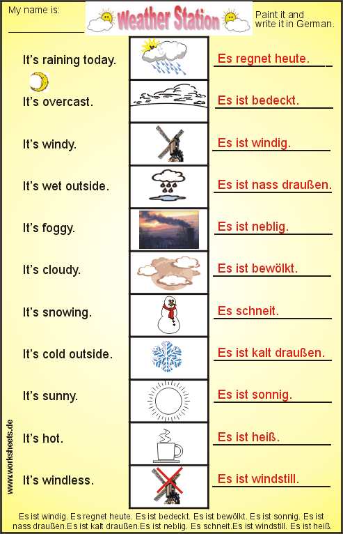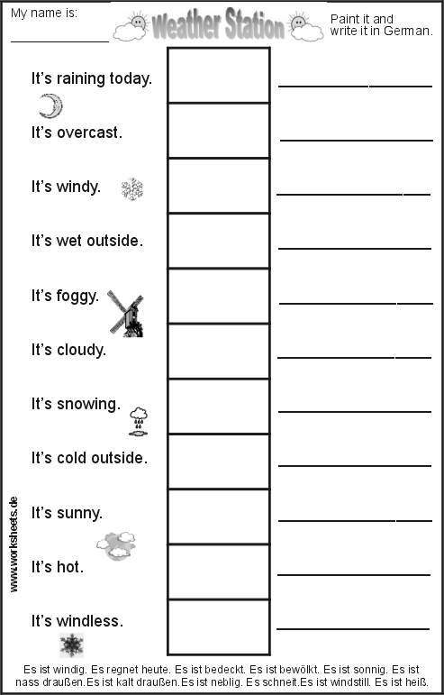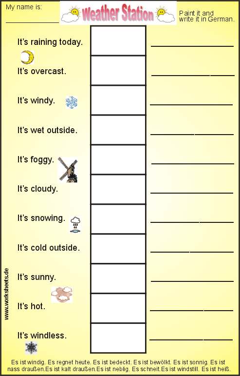 “Weather Station”, a worksheet, a transparency film and a worksheet with solutions. It can be used both for german and english students.