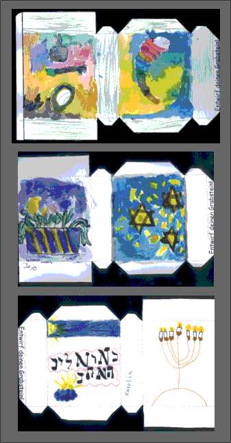Dieses Modell eines Würfels und eines Quaders kann in Mathematik, aber auch in Sachfächern eingesetzt werden. Nach dem Besuch auf dem jüdischen Friedhof basteln wir Grabsteine nach den Motiven, die wir dort entdeckt haben.